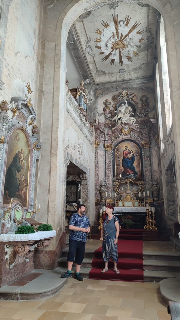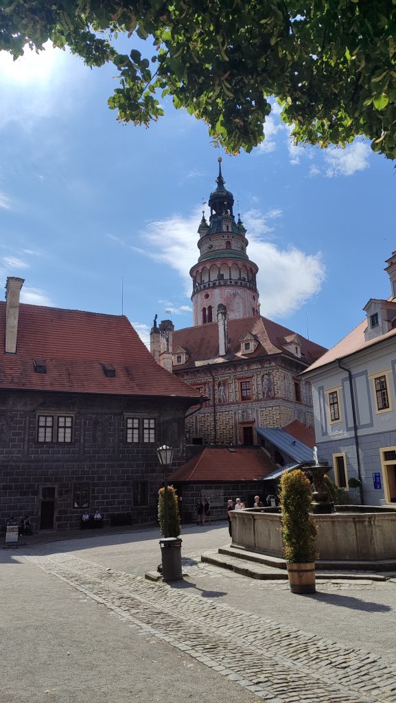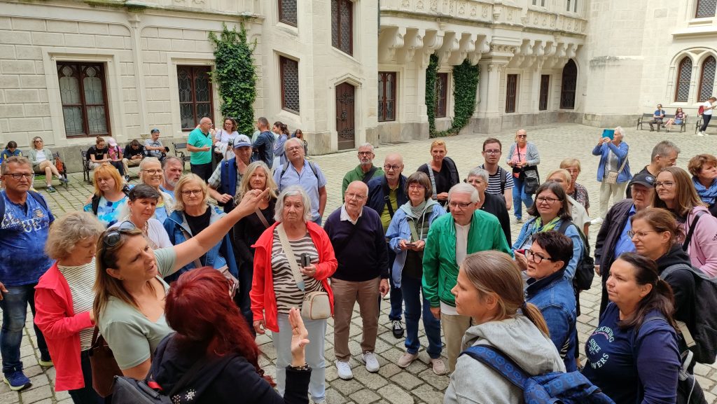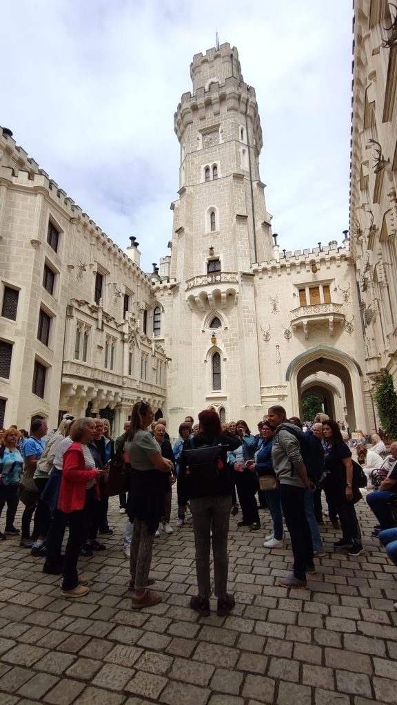 Am 12. Juli startete unsere fröhliche Reisegruppe voller Vorfreude mit dem Bus in Richtung Südböhmen. Unser erstes Ziel war das märchenhafte Schloss Hluboká, das wir mit einem Bummelzug erklommen. Oben angekommen erwartete uns eine beeindruckende Führung durch das prachtvolle Schloss, bei der wir spannende Geschichten aus vergangenen Jahrhunderten erfuhren – man fühlte sich fast wie in einer anderen Zeit.