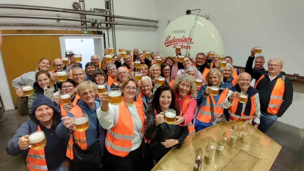 Nach diesem ersten Highlight ging es weiter zur Brauerei Budvar. Dort stärkten wir uns zunächst bei einem deftigen Mittagessen, bevor wir bei einer interessanten Führung hinter die Kulissen des Bierbrauens blicken durften. Besonders die Verkostung im kühlen Brauereikeller sorgte für Begeisterung – frischer geht Biergenuss nicht! Die Stimmung in unserer Gruppe war bestens.