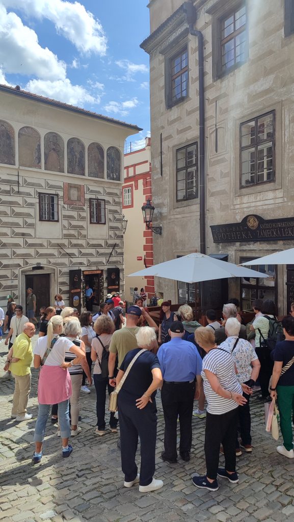 Am nächsten Morgen fuhren wir weiter nach Krumau (Český Krumlov) – eine Stadt voller Geschichte und Charme. Bei einer Stadtführung tauchten wir ein in die faszinierende Vergangenheit und bestaunten die liebevoll erhaltenen Altstadthäuser. Besonders eindrucksvoll war die Führung durch das Schloss Krumau, bei der wir uns wie auf einer Zeitreise fühlten. Anschließend ließen wir die Stadt bei Kaffee und Kuchen auf dem Marktplatz gemütlich auf uns wirken, bevor wir die Heimreise antraten.